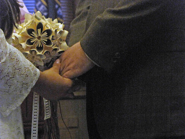 Back in 2012 my sister got married. She had told my mother that she wanted to carry a book down the isle instead of a bouquet of flowers. After my mom told me, I decided to propose the idea to my sister of flowers that were made out of the pages of the book that she wanted: Pride and Prejudice. She loved the idea, so I offered to make them for her. She picked the book, but she give me total creative freedom to choose the colors and whatever else. So, I printed the words on the correct size pieces of paper for each petal. I didn't want to buy the book to cut it up, that just felt wrong or something; even though it's not. I spent hours making these kusudama flowers, attaching the stems, and tying it all together with a ribbon that matched my sister's dress. I made her husband's boutonniere as well. I was so proud that I was able to contribute to her wedding in such a special way. They turned out lovely, and now she has them to keep forever!